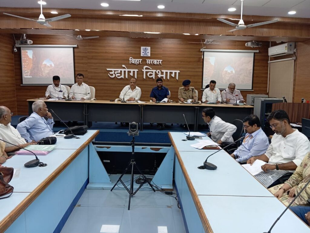 बैठक में श्री मिहिर कुमार सिंह, अपर मुख्य सचिव, उद्योग विभाग, निखिल धनराज निप्पाणीकर उद्योग निदेशक उद्योग विभाग, बिहार राज्य प्रदूषण बोर्ड के पदाधिकारी, अग्निशमन विभाग के पदाधिकारी, वाणिज्यकर विभाग के पदाधिकारी, राजस्व एवं भूमि सुधार विभाग के पदाधिकारी, श्रम संसाधन विभाग के पदाधिकारी, उर्जा विभाग के पदाधिकारी के साथ अन्य पदाधिकारी भी उपस्थित रहे। रिपोर्ट अनमोल कुमार।