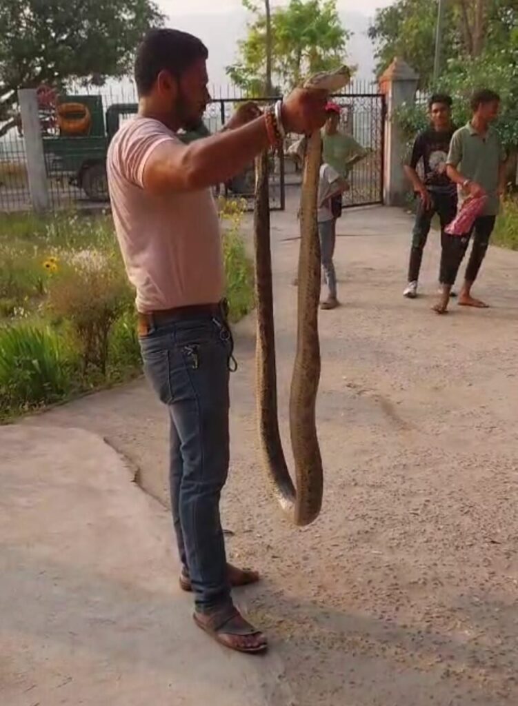 जल संसाधन विभाग के अधीक्षण अभियंता के सरकारी आवास परिसर में निकला 9 फीट का अजगर।