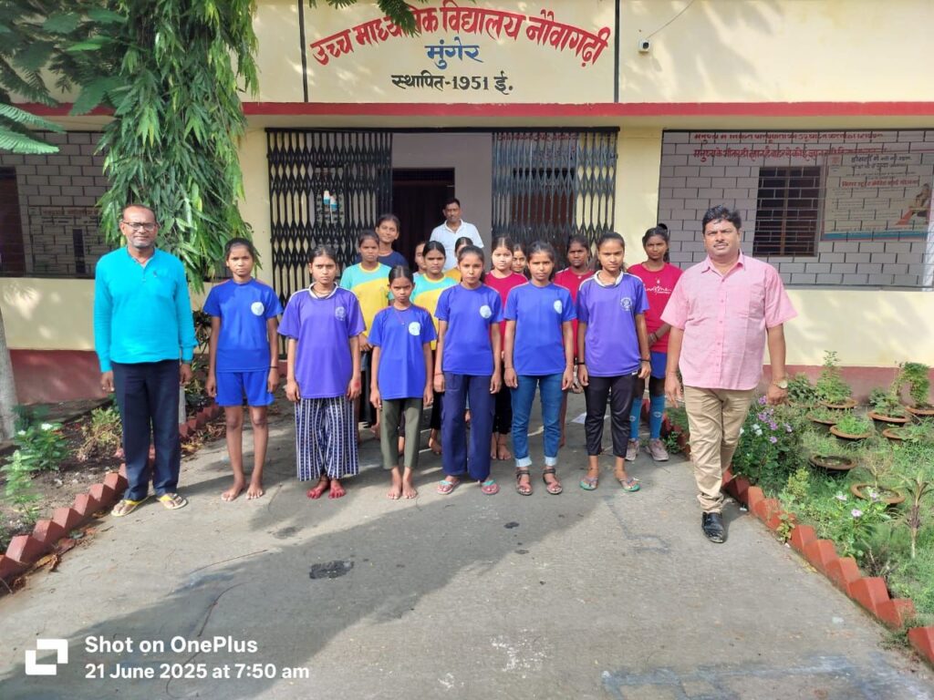 रिपोर्ट अनमोल कुमार मुंगेर। आज २१ जून को विश्व योग दिवस के रूप में पुरे विश्व में उत्तम स्वास्थ और निरोग रहने के लिए योग मनाया जा रहा है +२ उच्च विद्यालय नौवागढ़ी मुंगेर में शिक्षक के साथ साथ छात्र और छात्राओं उत्साहपूर्वक एक उत्सव के रूप में मनाया भारतीय राष्ट्रीय शैक्षिक महासंघ के प्रदेश सचिव अभय कुमार ने कहा की योग से हम स्वस्थ और निरोग तभी हो सकते है जब हमलोग नियमित योग करेंगे तब स्वस्थ शरीर में स्वस्थ मन की वास होती है तभी मानव व प्रकृति के बारे में सकरात्मक सोच उत्पन्न होती इस योग दिवस के अवसर पर प्रभारी प्रधानाध्यापक डॉ कृष्णमुरारी, योग शिक्षक चंदन, प्रमोद कुमार,राजीव कुमार, सागरजी,किशोरजी आदि..।