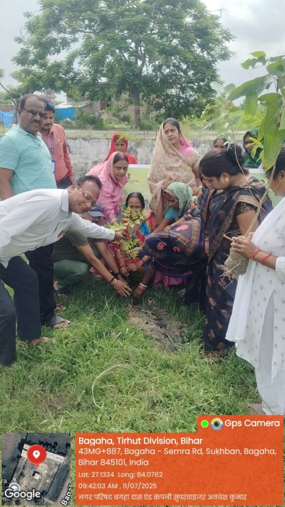 एक पेड़ मां के नाम अंतरराष्ट्रीय अभियान:बगहा नगर के वार्ड संख्या-11 में स्थित आंगनबाड़ी केंद्र गिरिधरन मिश्र कालेज बगहा 02 के प्रांगण में किया गया 50 पौधा रोपित