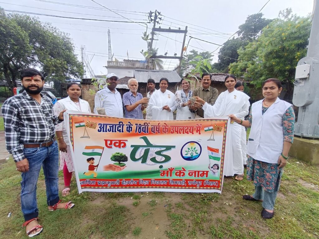 सुपौल। प्रजापिता ब्रह्माकुमारी ईश्वरीय विश्व विद्यालय सिमराही राघोपुर के तत्वाधान में नगर पंचायत सिमराही के विभिन्न स्थान जैसे टेकनिया वर्ल्ड स्कूल और अतिरिक्त प्राथमिक स्वास्थ्य केंद्र गणपतगंज के प्रांगण में ब्रह्माकुमारीज संस्थान के स्थानीय सेवा केंद्र प्रभारी राजयोगिनी बबीता दीदी, सिमराही नगर पंचायत के उपमुख्य पार्षद बिनीता देबी, मुख्य चिकित्सा पदाधिकारी राघोपुर डॉक्टर दीप नारायण जी, सामाजिक विज्ञान असिस्टेंट शिक्षिका श्रीमती पूनम देवी, टेकनिया वल्ड स्कुल के डायरेक्टर अतुल वर्मा, समाजसेवी बैजनाथ प्रसाद भगत,ब्रह्माकुमारी बिना बहन, ब्रह्माकुमार किशोर भाईजी इत्यादियों ने भारत की आजादी के 78 वीं वर्ष के उपलक्ष्य में वृक्षारोपण करने का कार्य किया। प्रकृति को हरा भरा बनाना है एक पेड़ मां के नाम लगाना है ऐसा संदेश जन-जन को दिया।