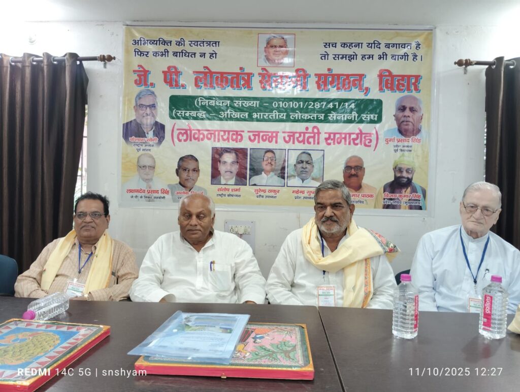 राजस्थान से आए पूर्व सांसद श्री सोनी आज राजधानी पटना में जेपी जयंती के अवसर पर जगजीवन राम शोध एवं अध्ययन संस्थान में जेपी सेनानियों के समारोह को संबोधित कर रहे थे. इसका आयोजन जेपी लोकतंत्र सेनानी संगठन बिहार ने किया था. संगठन के बिहार प्रभारी अशोक सिंघई ने जेपी सेनानियों का आह्वान किया कि वे प्रधानमंत्री नरेंद्र मोदी द्वारा नए भारत के निर्माण में सक्रिय सहयोग दें समारोह की अध्यक्षता संगठन के बिहार प्रदेश अध्यक्ष एवं पूर्व विधायक दुर्गा प्रसाद सिंह ने की.