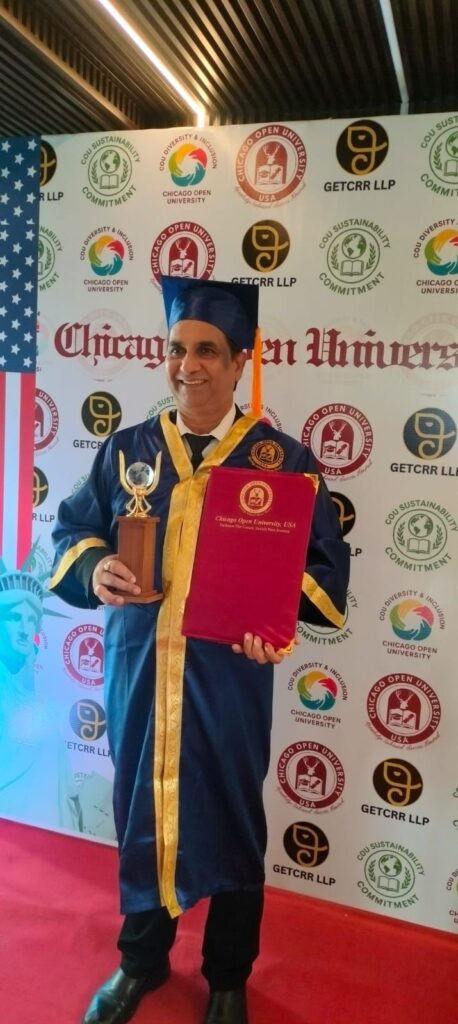ए.पी पाठक को शिकागो ओपन यूनिवर्सिटी से मिली डॉक्टरेट की मानद उपाधि।