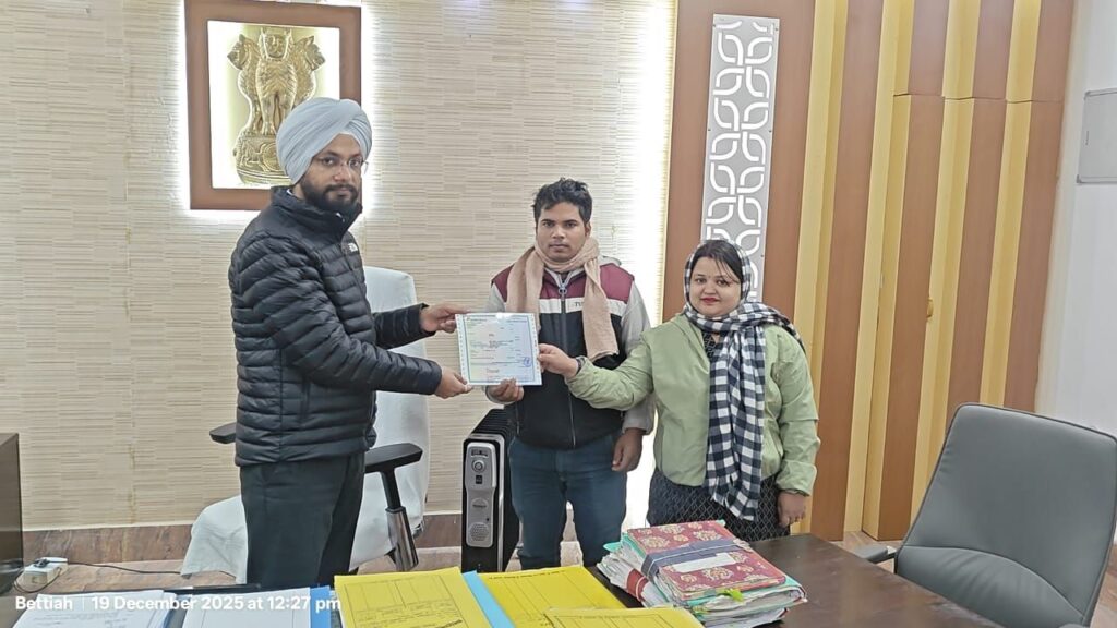 बेतिया। जिला पदाधिकारी, पश्चिम चंपारण, तरनजोत सिंह द्वारा आज सामाजिक समरसता एवं समानता को बढ़ावा देने के उद्देश्य से संचालित अंतर्जातीय विवाह प्रोत्साहन अनुदान योजना के अंतर्गत तीन लाभुक दंपतियों को एक–एक लाख रुपये का सावधि जमा पत्र (एफडी) प्रदान किया गया। यह वितरण कार्यालय प्रकोष्ठ में आयोजित कार्यक्रम के दौरान किया गया।