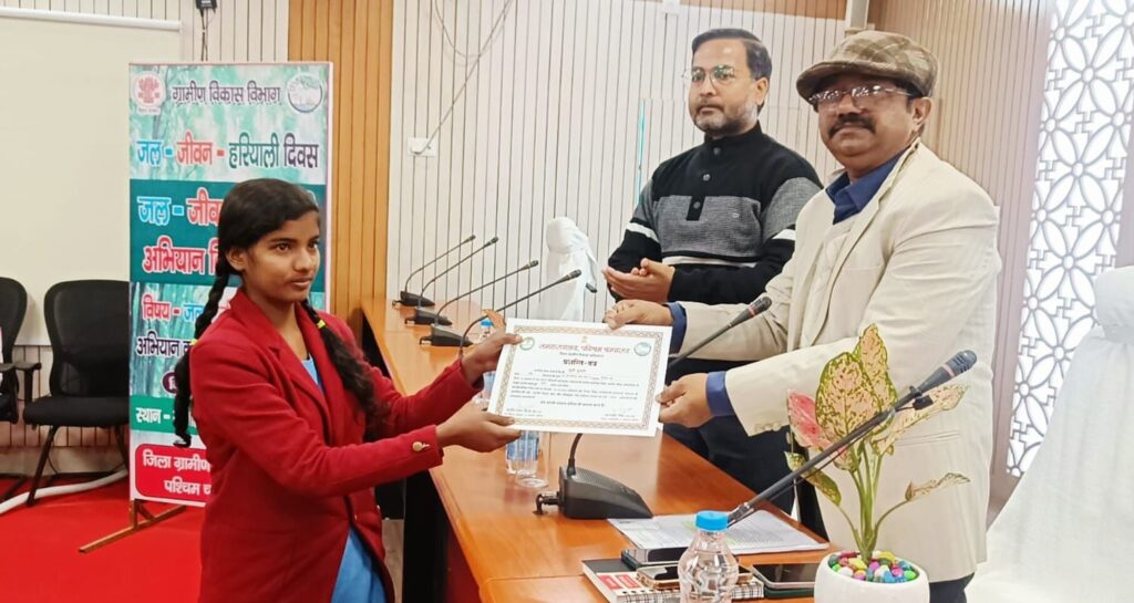 कार्यक्रम के दौरान जल-जीवन-हरियाली अभियान के अंतर्गत पूर्व में आयोजित क्विज प्रतियोगिता’’ में उत्कृष्ट प्रदर्शन करने वाले प्रतिभागियों को सम्मानित किया गया। प्रथम स्थान प्राप्त करने वाले आयुष कुमार गुप्ता, द्वितीय स्थान पर रहे मनोरंजन कुशवाहा एवं तृतीय स्थान प्राप्त करने वाली खुशी कुमारी को प्रशस्ति पत्र प्रदान किए गए। निदेशक, एनईपी द्वारा जानकारी दी गई कि प्रथम पुरस्कार राशि 6000, द्वितीय 5000 एवं तृतीय 4000 संबंधित प्रतिभागियों के बैंक खातों में आरटीजीएस के माध्यम से अंतरित की जाएगी।