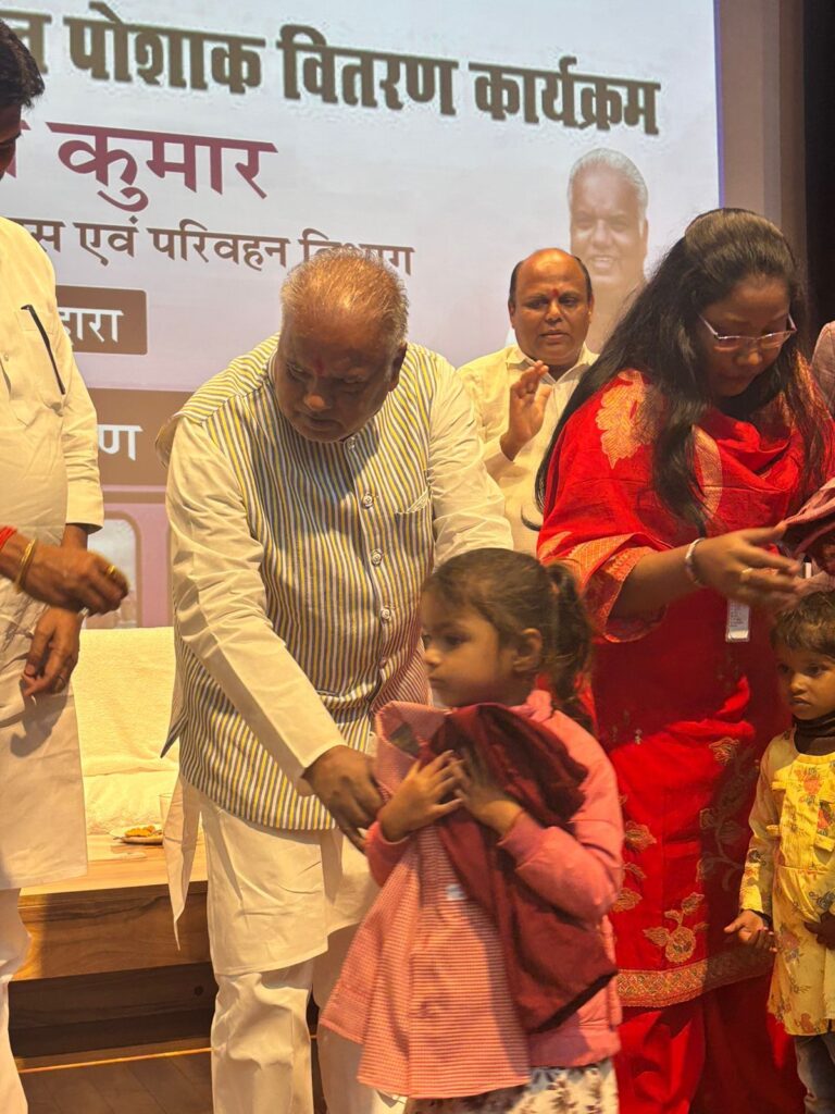 ग्रामीण विकास मंत्री ने जीविका दीदियों से निर्मित पोशाक को आंगनबाड़ी बच्चों के बीच वितरित किया।