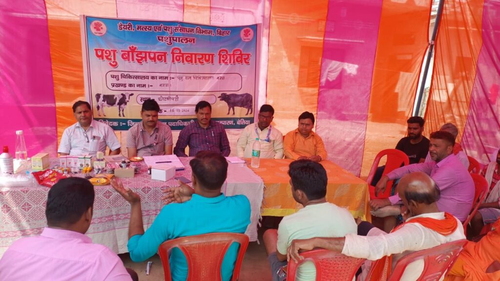 बगहा। छोटकीपट्टी बड़गांव में पशु शल्य चिकित्सालय द्वारा पशु बांझपन शिविर लगाया गया जिसमें बांझपन संबंधी जानकारी औरर उसके उपचार का उपाय बताया गया। साथ ही कई पशुओं का उपचार भी किया गया,इस दौरान , कई प्रकार के बीमारियों का दवा वितरित किया गया ,जैसे हिमालय बत्तीसा,मिनरल मिक्सर, कीड़ी की दवा, टिक की दवा ओर भी कई बीमारियों का इलाज किया गया।जिसमें बगहा पशु शल्य चिकित्सक डा.संजय कुमार, चौतरवा के डा.अजय कुमार चौधरी,डाटा ऑपरेटर ज्ञान प्रकाश तिवारी,एवं एंबुलेंस के कर्मचारी विनोद कुमार झा उपस्थित थे।
