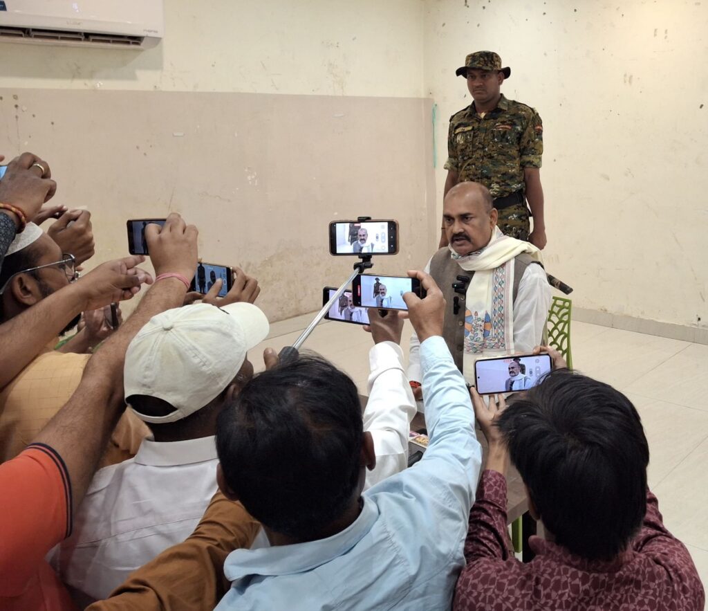 विधायक सुरेन्द्र प्रसाद कुशवाहा प्रेस कांफ्रेंस करते हुए