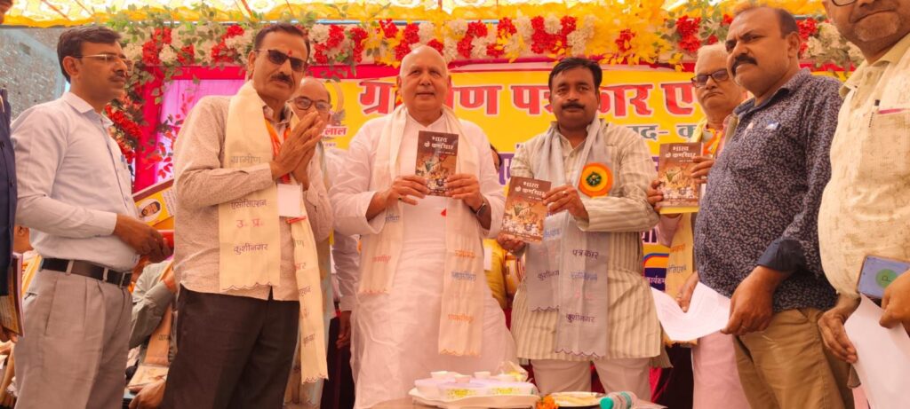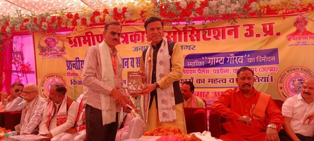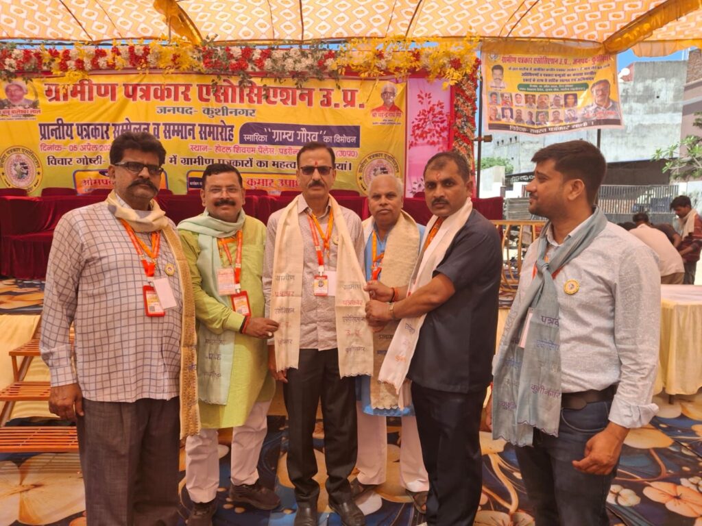 ।वही विशिष्ट अतिथि देवरिया सांसद शशांक मणि त्रिपाठी ने इस मौके पर कहा कि पत्रकार अपना ध्यान मेटा स्टोरी पर भी ध्यान रखें। अर्धसत्य से परहेज करें। अमृत प्रयास अभियान का पत्रकार भी हिस्सा बनें। पत्रकारों का दायित्व है हर हाल में पूर्ण सत्य का उद्घाटन करें। विशिष्ट अतिथि कुशीनगर सांसद विजय कुमार दुबे ने कहा ग्रामीण पत्रकारों के लिए ग्रामीण क्षेत्रों में पत्रकारिता करना बहुत कठिन चुनौती है। ग्रामीण पत्रकारों के हर संघर्ष में मेरा अभूतपूर्व सहयोग रहेगा। प्रदेश अध्यक्ष ग्रापए महेन्द्र नाथ सिंह ने कहा कि ग्रापए प्रदेश का संबसे बड़ा व सर्घषशील व जुझारू संगठन है। पत्रकारों के हित के लिए हमेशा तत्पर रहता है।